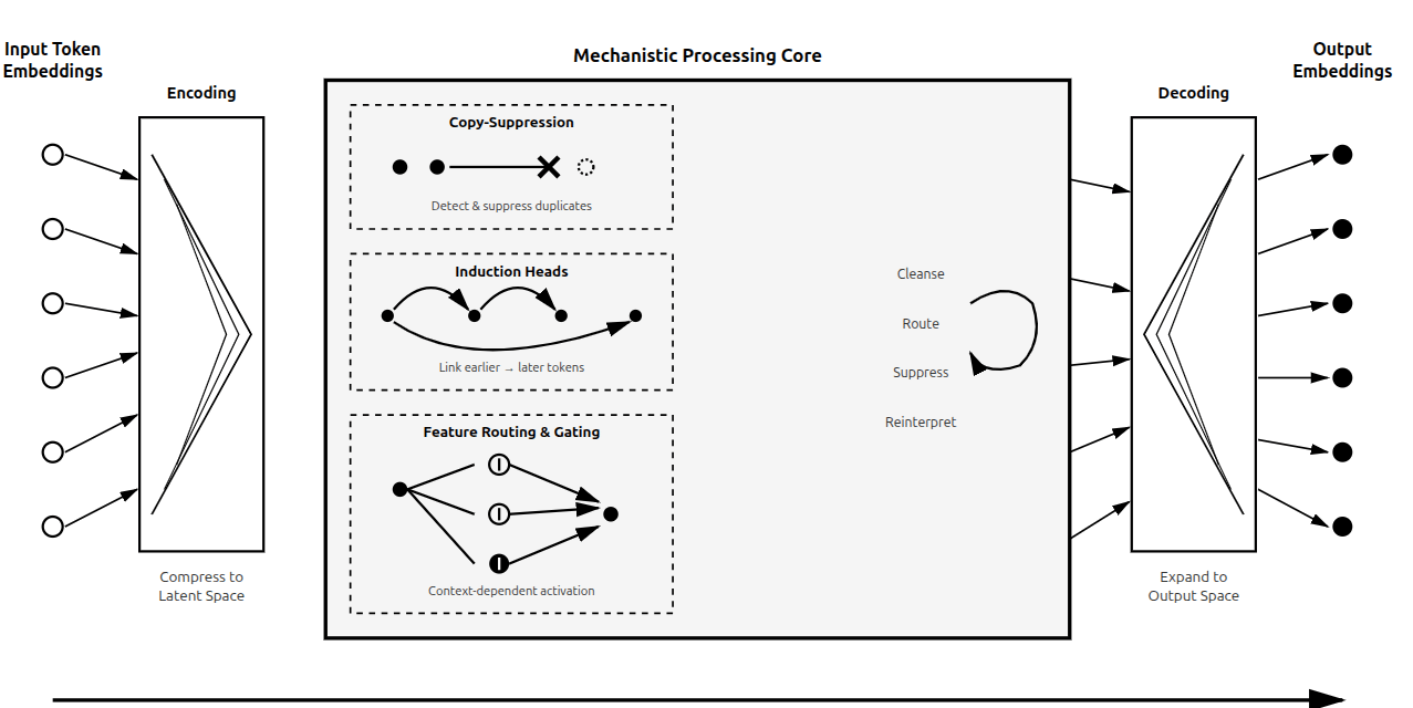 A Mechanistic Layer Perceptron Transcoder is the linear + non-linear block in a transformer layer (usually called the MLP or FFN) understood mechanistically as a feature translator. It detects certain directions in the residual stream → applies a nonlinearity → and writes out transformed features into new directions.